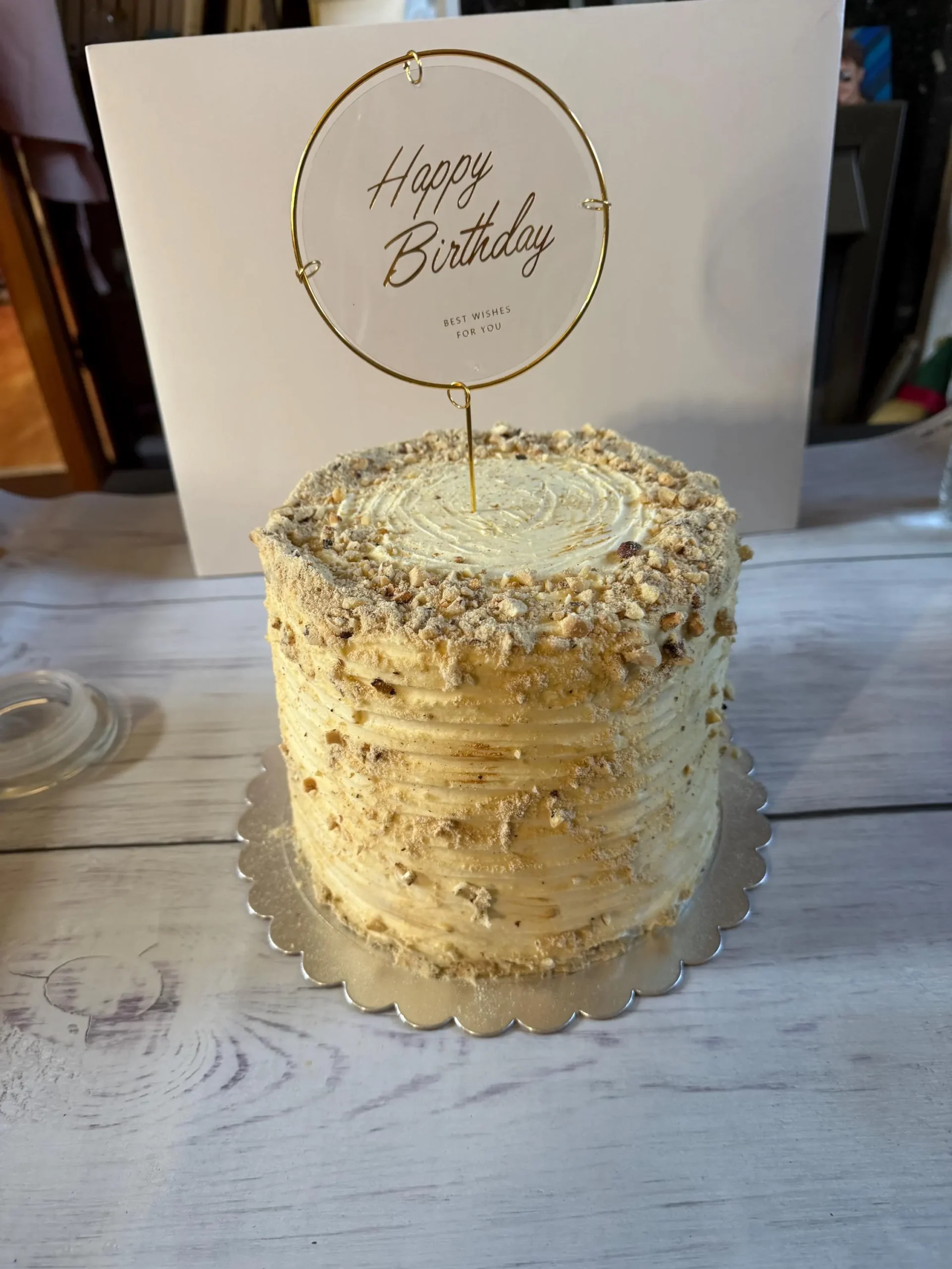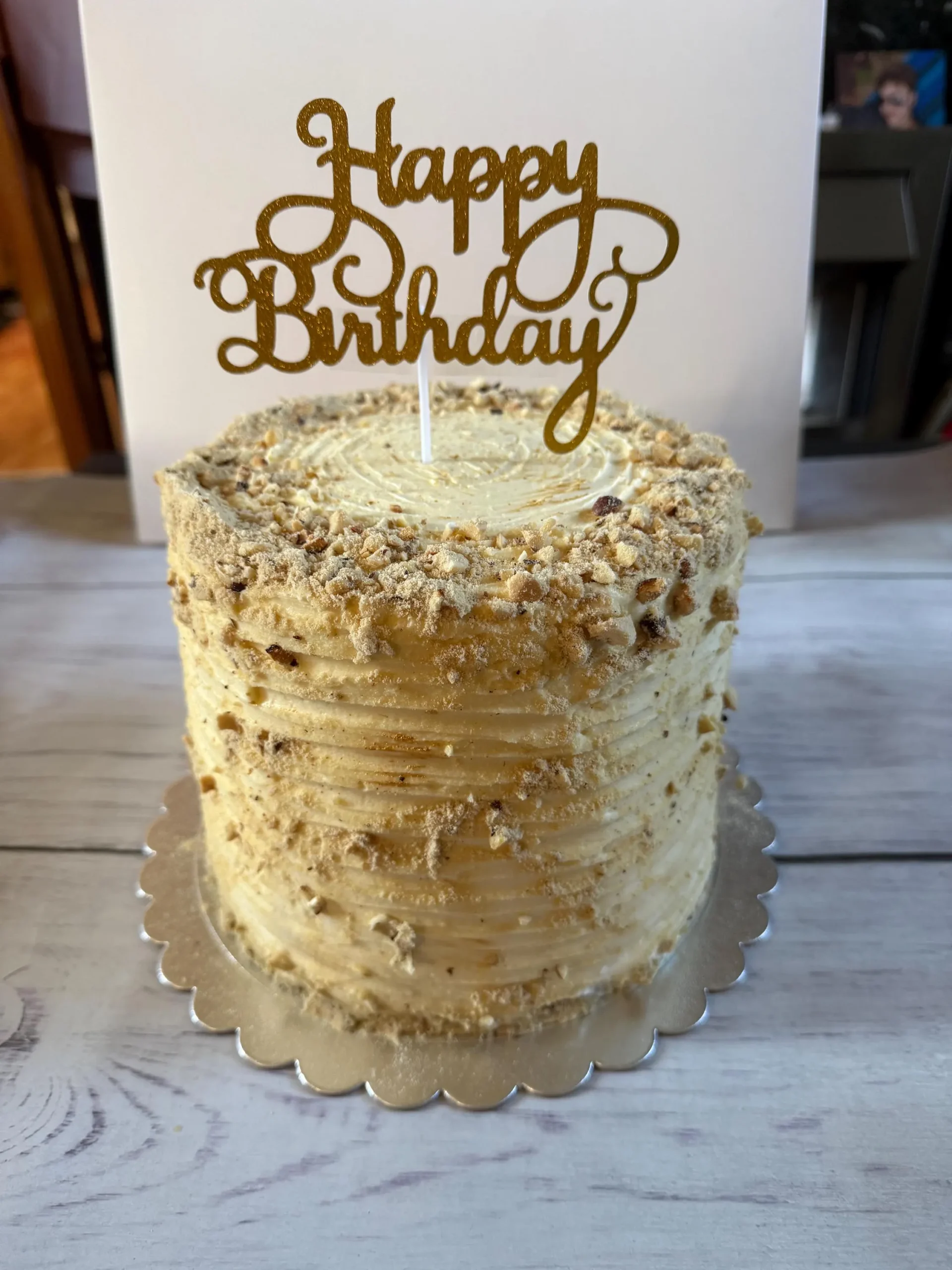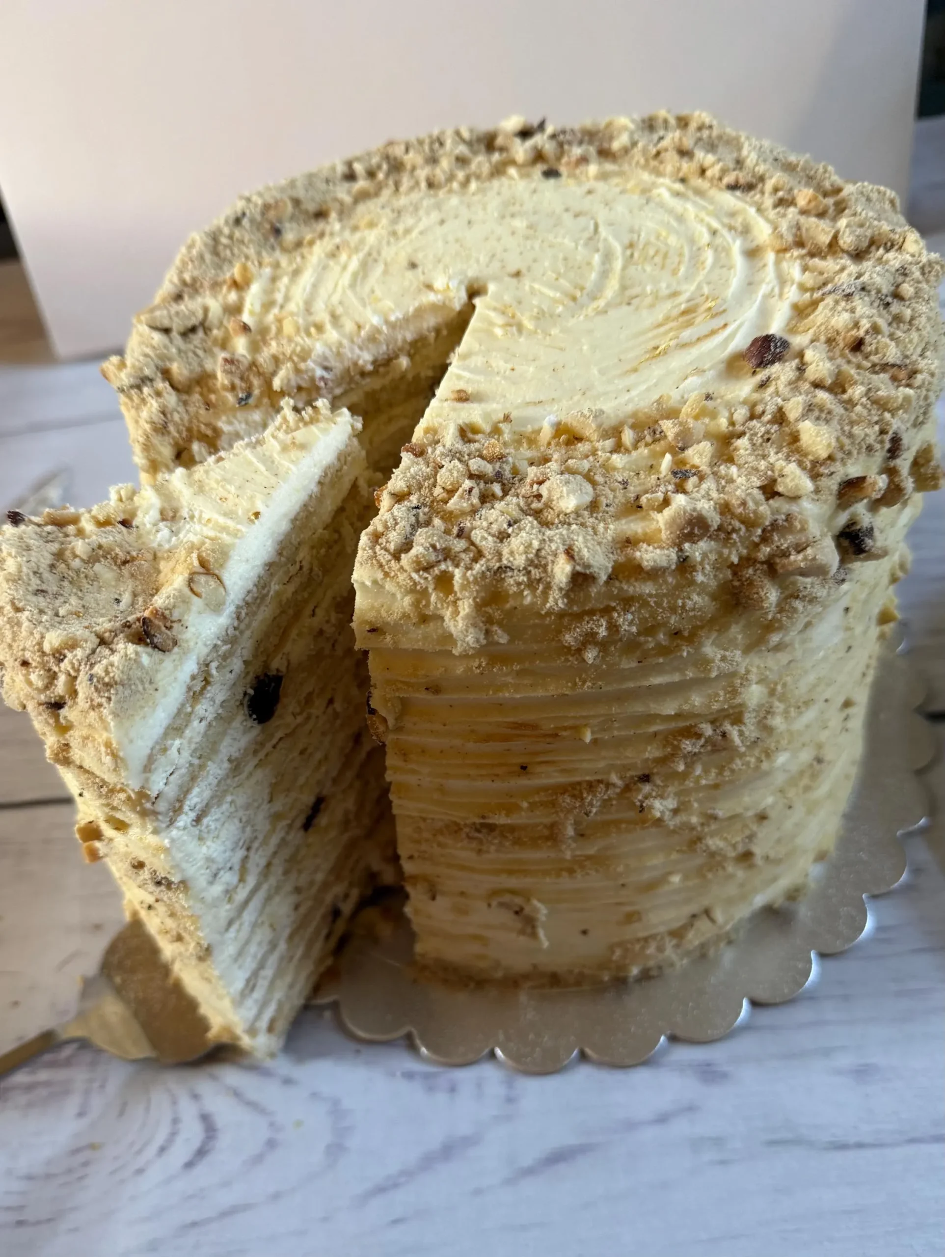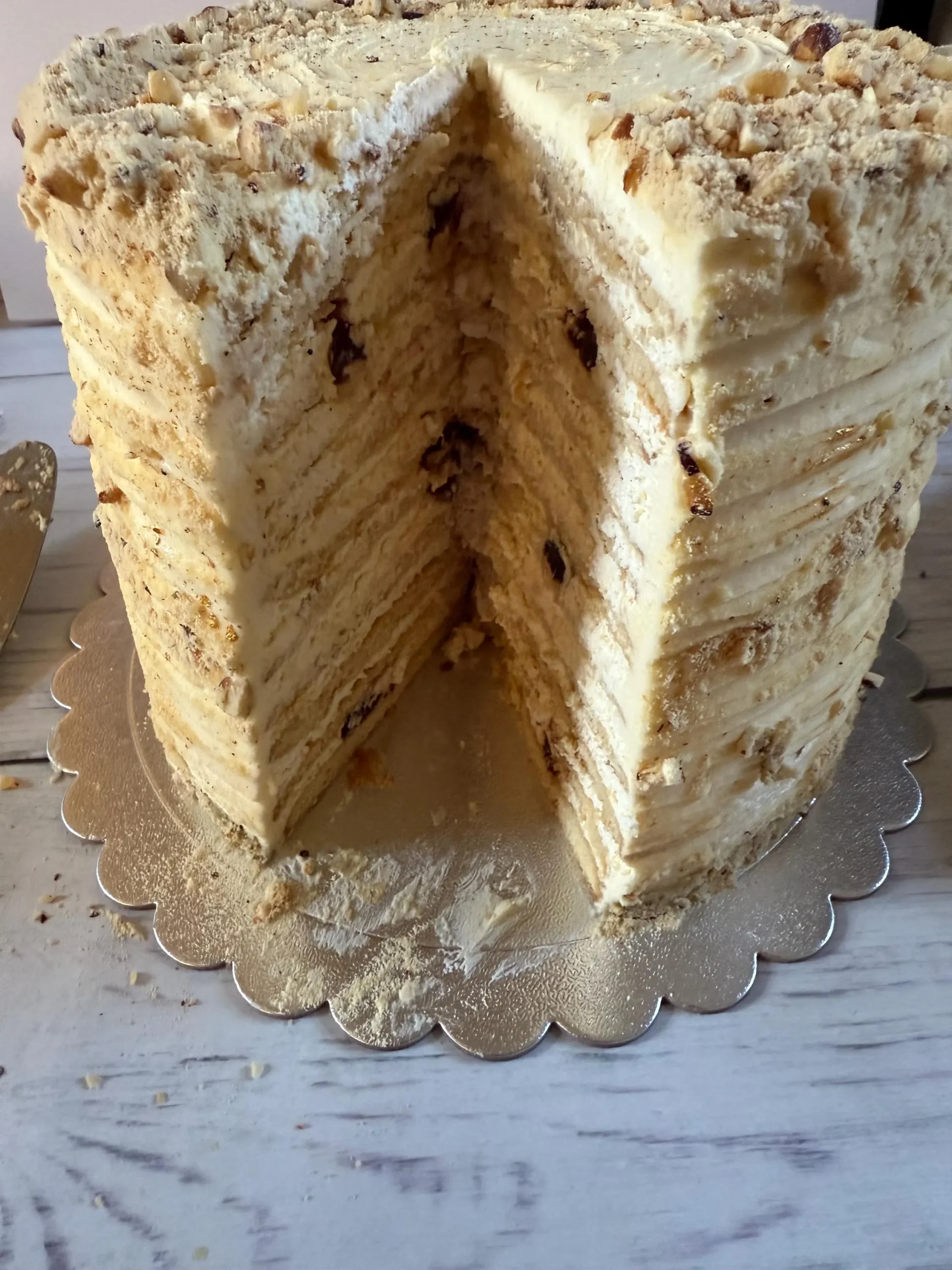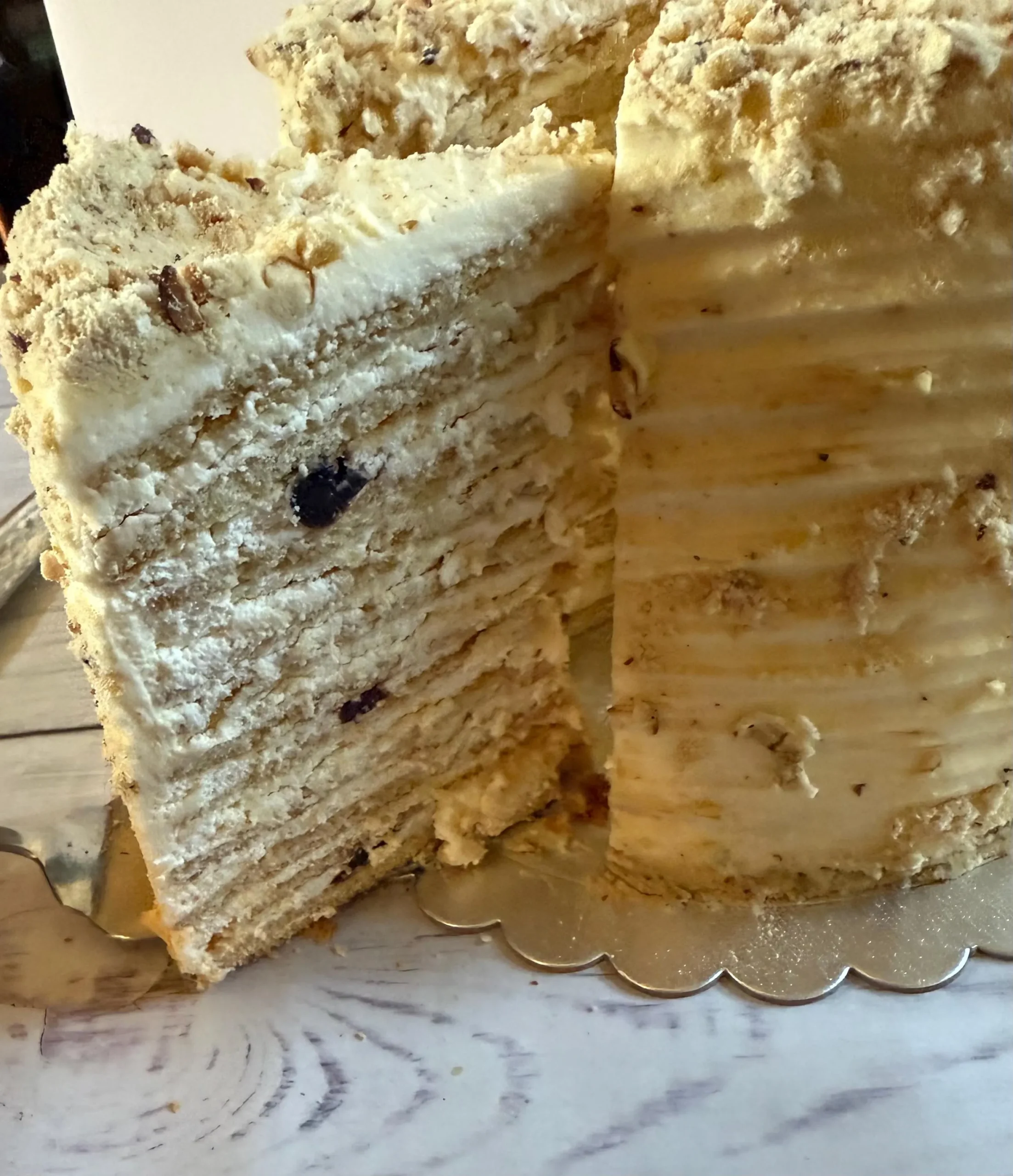 * Nuts: YES (Ground walnuts in layers and decoration)