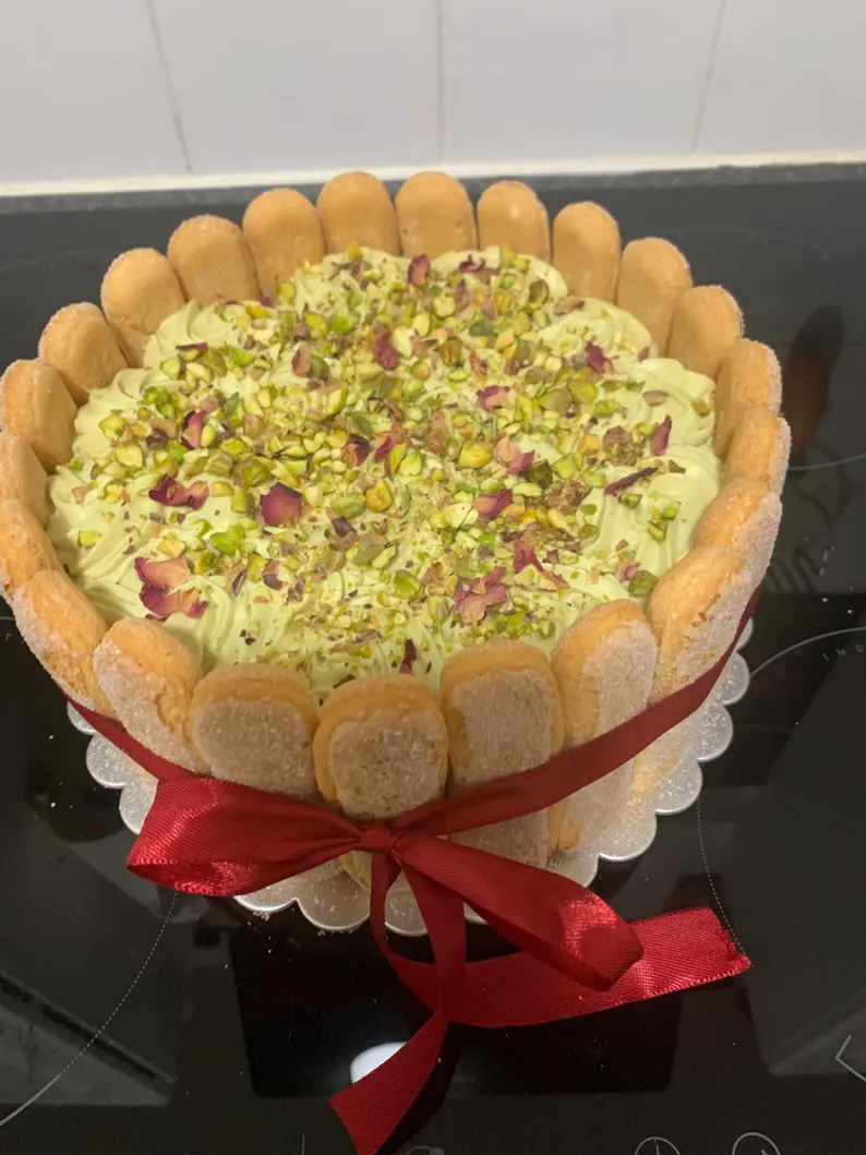 * Nuts: YES (Pistachio paste and crushed pistachios for decoration)